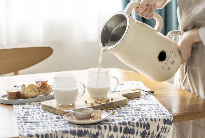 \ 材料(8人份) / 🔹 黃豆:約80g (2平杯) 🔹 水:約800ml 🔹 砂糖或黑糖:適量 \ 作法 / 將黃豆清洗乾淨,放入豆漿機中。 加入水後蓋上蓋子。 選擇「豆漿」或「濃豆漿」功能,按下「開始/取消」啟動。 完成後可依個人口感加入砂糖或黑糖調整甜度。 \ 小撇步 Point / ✅ 豆漿的濃度可在壺內水位線的「下限~上限」範圍內調整。 ✅ 烹調完成後,會成為含有全部黃豆成分的濃郁豆漿。若覺得口感偏粉,可使用布巾(如棉紗布等)過濾後飲用。 ✅ 過濾後剩下的豆渣,可再利用於其他料理中。 ✅ 若要冷飲豆漿,請在烹調完成後倒入其他容器放涼,再放入冰箱冷藏。